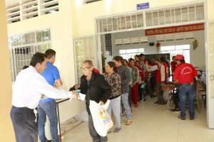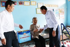 Ông Phan Hữu Giống – phó Tổng Giám đốc trao quà cho người nghèo