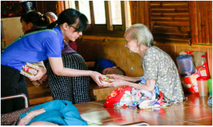 Hàng trăm phần quà bao gồm: bánh trung thu, sữa, tã và những vật dụng khác được đoàn viên ủng hộ đã được trao trực tiếp đến mọi người.