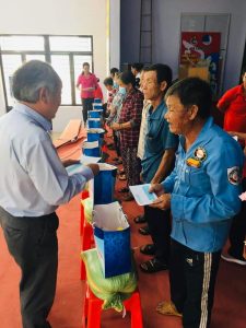 Ông Đinh việt Tiến – Chủ tịch Công ty trao quà cho bà con xã Long Phước