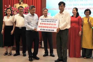 Lãnh đạo huyện trao hoa cảm ơn Công ty TNHH MTV Xổ Số Kiến Thiết và DVTH