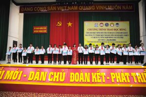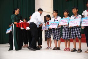 Ông Phan Hữu Giống – Phó Tổng Giám đốc Công ty trao học bổng cho học sinh