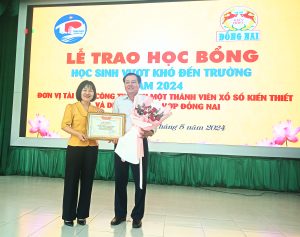 Công ty TNHH MTV Xổ Số Kiến Thiết và DVTH Đồng Nai hỗ trợ học bổng cho học sinh có hoàn cảnh khó khăn.